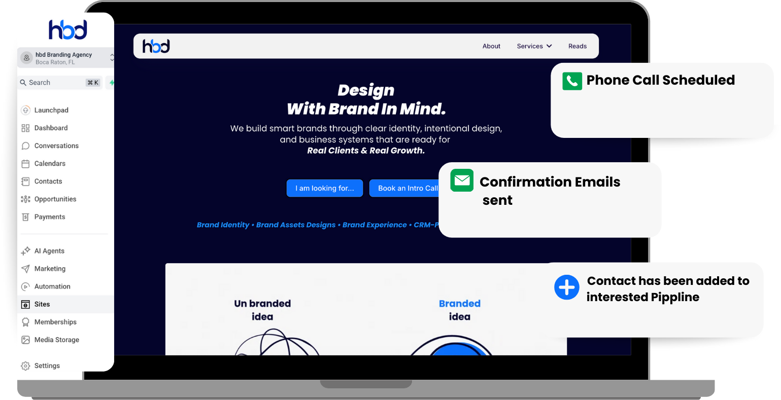 Brand Identity • Brand Assets Designs • Brand Experience • CRM-Powered Branded Websites